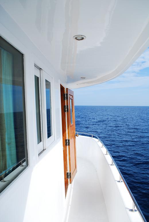 拿着地圖跟船長商討尋訪無人島的路線,原來很多看似無人的小島,其實是有人員看守的,大慨是某公司已租下小島,正待發展成為渡假島,原來船長和船員也不大清楚島嶼的分佈與及情況,原因是因為他們一般航行路線都是為潛水的客人而篇排,登陸對於潛水員毫不重要,因此船長也沒有詳細去深入了解吧。