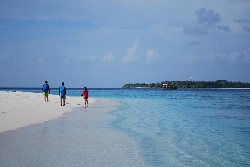 我們先發現了一個 house reef 極為完整而且十分亮麗的小島名字叫做 Thiladhoo,經過船員努力打聽之下,我們可以免費登島兩小時,原因是兩小時之後附近的一所渡假酒店已經安排其客人來此享受無人島之行程。