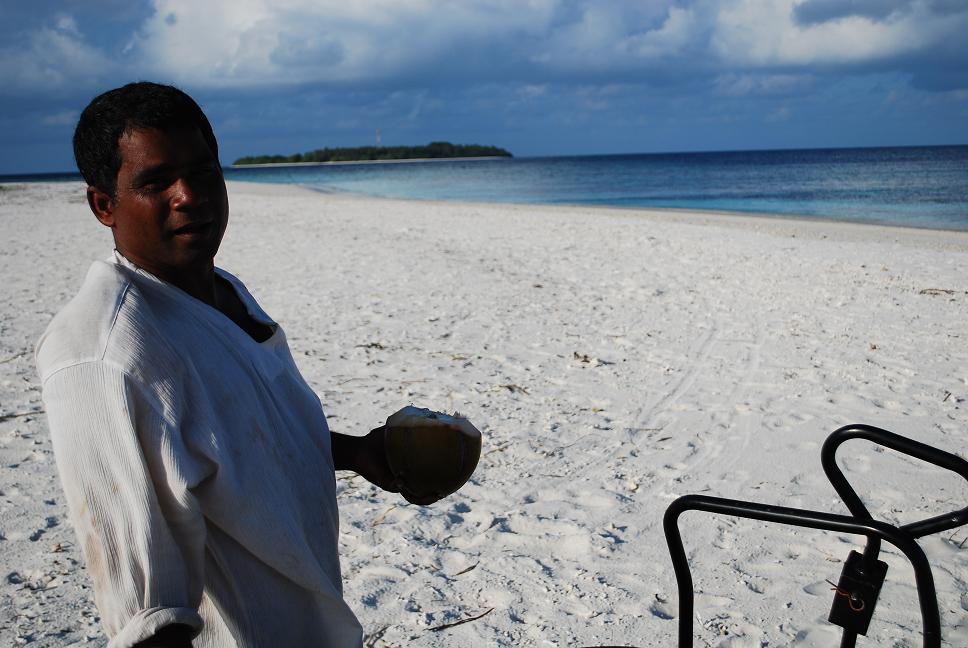 經過幾個失望的無人島尋找過程,我們決意在臨離開 Baa Atoll 前再重返一次我們此行中最完美的 Milaidhoo,今趟我們是熟人客了,島上負責看守的孟加拉籍員工還給我們椰子喝,還有只收取我們每人四塊美元,自此我們便稱這個瑰麗小島為「四蚊島」。
