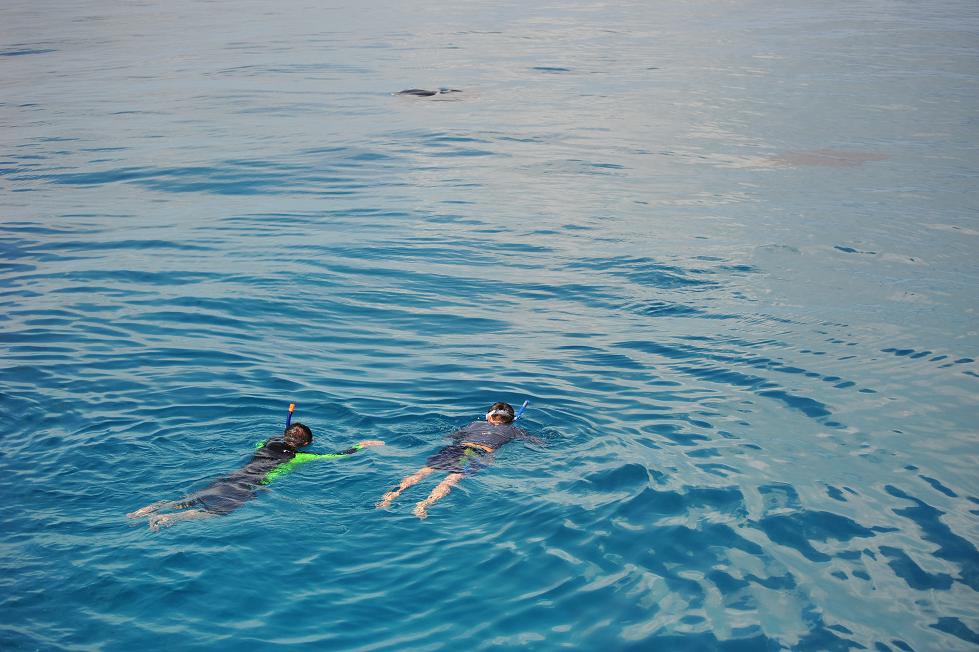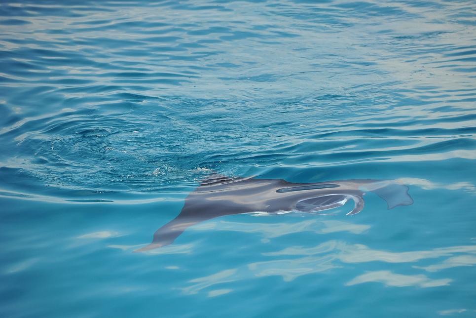 才過了不久,船的引擎慢慢地停了下來,四週頓時變得十分寧靜,感覺就更加迷人,一剎那間我們聽到船員在說 mantamantamanta!我們知道魔鬼魚終於來了,他們利用小艇接載我們到距離魔鬼魚更接近的位置,我們都紛紛帶上潛鏡及吸管跳入水中,嚇然發現身型龐大的魔鬼魚就近在咫尺,每條真的足足有三公尺闊大!又想看清楚他們多一點,但內心又擔心萬一跟它們碰個正着怎辦,所以不停的追、又不停的避,就像在大海中跟它們翩翩起舞。