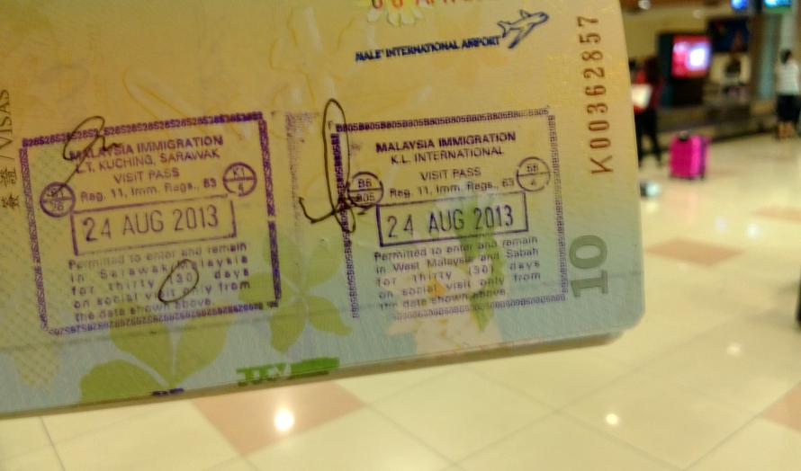 由於是國際航班轉內陸航線,所以需要先在吉隆坡國際機場辦理入境手續,到下一程內陸機理論上就不用再辦理出入境手續了,但很奇怪,當內陸機抵達古晉機場的時候,入境櫃台又再一次出現眼前,再看清楚真的是指明是內陸航線乘客的入境櫃台,入境古晉必需再登記指模及護照蓋印,所以一天之內就有兩個馬來西亞不同城市的入境蓋章,這個雙重入境的經驗至今真的是從未發生過,回想起那些年由智利首都聖地牙哥飛往復活島,若然也可有相類似的情況,最終擁有一個復活島的入境蓋章那有多好呢!