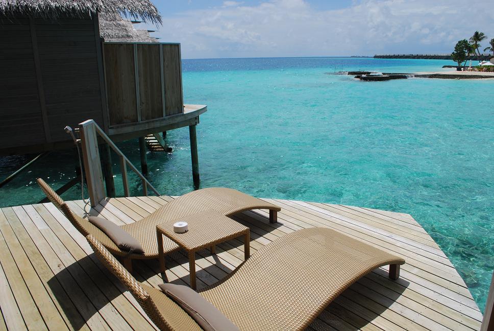 大部份預訂水上屋,都希望房間安排在Long Jetty那邊,因為不想看到遠處的垃圾島(Thilafushi)。除了Premium Deluxe Spa Water Villa及Deluxe Sunset Water Villa可以100%確定在 Long Jetty那邊外,訂Deluxe Water Villa的話不到辦理入住那刻也沒能保証房間安排在Long Jetty還是Short Jetty那邊。其實Short Jetty那邊也並非毫無優勢,那邊兩條棧道中間的水深較淺兼風平浪靜,要是泳術不精的話在那邊較安全及安心,而且距離房間不遠魚類已經很多。Long Jetty那邊則水較深,而且風浪頗大,但要是泳術佳的話游出去House Reef只十多米的距離,這邊魚的數量及品種亦較多。