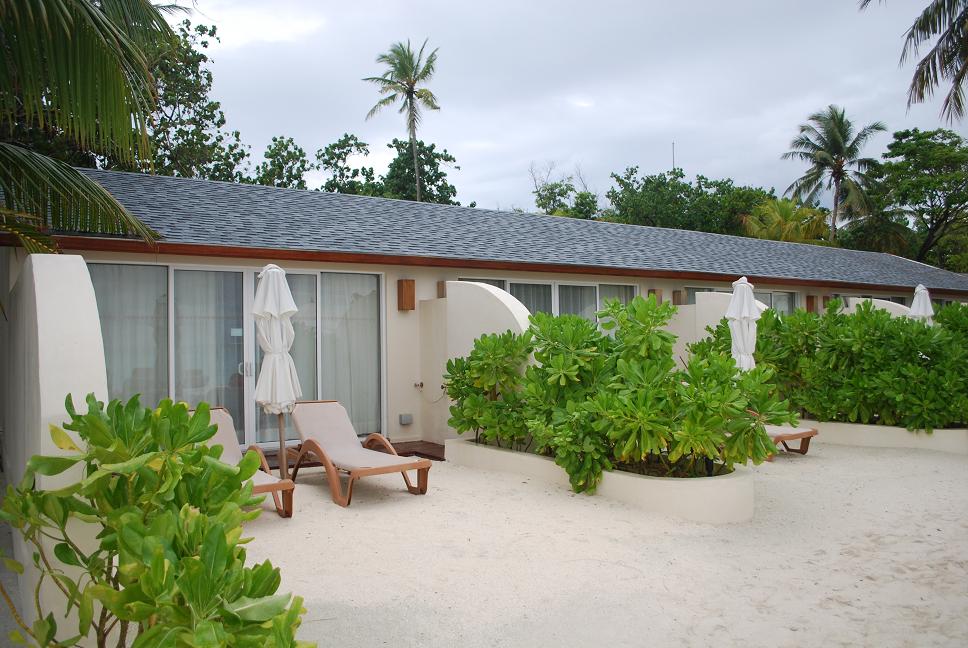 沙灘屋全建於小島西沿的沙灘旁,房間面海的方向是落地玻璃門,門一打開就是沙灘,門前擺放兩張私屬的躺椅及一把太陽傘,步行數十步便到海邊,全部房間均可觀看日落。由於小島面積不大,因此入住沙灘屋的話所有公共設施均近在咫尺,可以說是十分便利,唯獨私隱度較低,其他住客在沙灘上遊走時都可看到你的房間。若然打算選擇入住沙灘屋,Deluxe Ocean Front Beach Villa 的私隱度相對較高,因為房間位處沙灘西南邊沿的位置,路過的人相對會較少。Ocean Front Beach Villa 跟 Deluxe Ocean Front Beach Villa 房間內的設計基本上是一樣,差別在於 Deluxe Ocean Front Beach Villa 的浴室內加設了一個按摩浴缸。