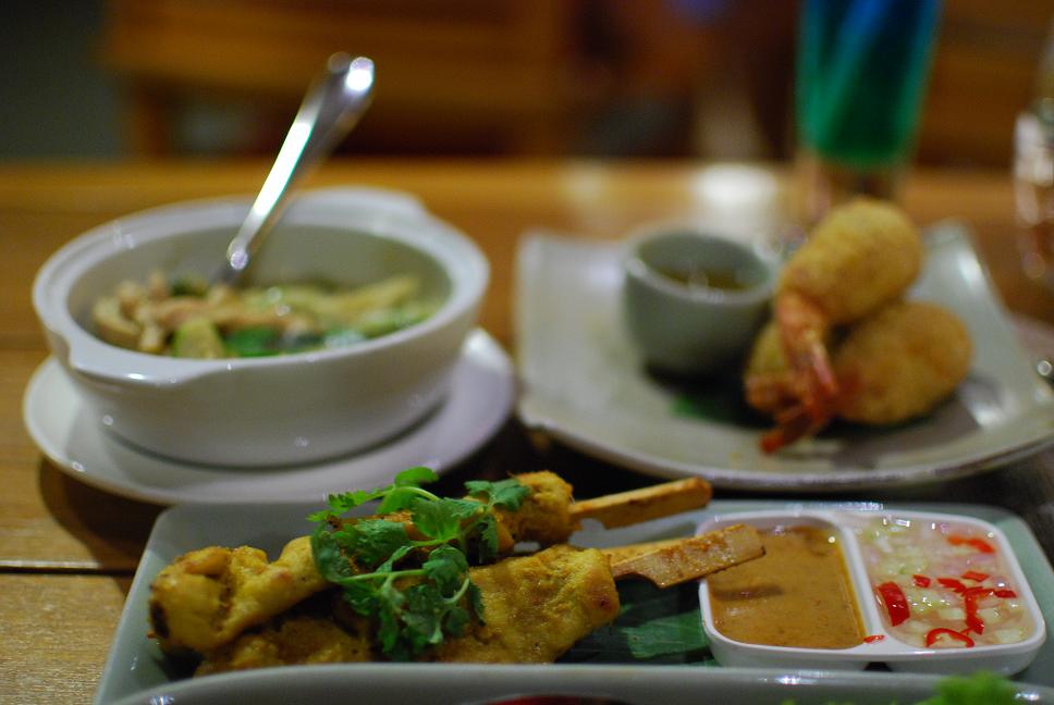這間泰國餐廳是我出發前最期待的,因為看了幾篇遊記,都說這間泰菜是各餐廳中最好吃的。第二天晚餐就選了這間傳說中的 Suan Bua。看完餐牌後始終覺得晚市套餐有齊頭盤、主菜及甜品比較划算,因此最終還是點選了套餐。我跟朋友頭盤選了炸蟹鉗及沙嗲雞肉串、主菜選了青咖哩雞及酸辣燒牛肉、甜品則選了泰國甜品中的經典芒果糯米飯。滿心期待的美食終於上桌了!每碟食物的份量真的是真的是…少得可憐!平時吃飯狼吞虎嚥,習慣了秒間鯨吞食物的我亦要突然要化身成為如一位英國紳士,風度翩翩地享受英式下午茶般去細嚼每口食物,否則兩分鐘內便將之一掃而空就失禮了,若果嫌餸菜份量太少而又不打算額外付費加菜的話,幸好仍有白飯任舀,那總算可以完成果腹最終功能。炸蟹鉗及沙嗲雞肉串是一般正常味道,青咖哩雞的汁是伴飯的救星,酸辣燒牛肉香濃可口,酸辣汁開胃美味,但一碟只得四小片,旁邊伴碟的生菜份量還多!芒果糯米飯可算是全餐的亮點,芒果清甜,椰汁糯米飯甜度及柔軟度適中,大愛!總括而言味道確實是不錯的,但並沒有驚為天人的感覺,就跟平時在香港吃的泰國菜的水準差不多。