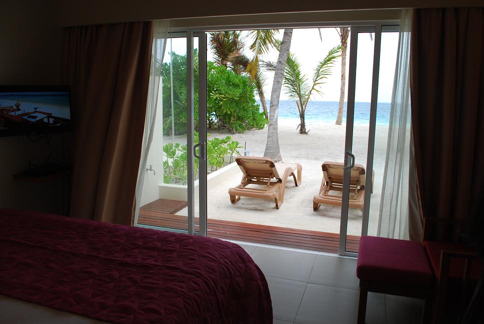個人認為雖然房間面積比其他馬爾代夫的酒店細小,但設計非常舒適簡約,最令我欣賞和喜愛的設計是,很多馬爾代夫酒店的Beach Villa房型為確保住客的私隱,故此在露台外的一片沙灘種滿矮小的灌木,但卻阻擋了最珍貴的海景,而這裡的所有Beach Villa只要一打開玻璃門就是一片白沙灘及直通印度洋,感覺與海洋零距離!